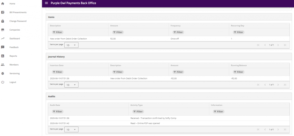 We will give you full training when you sign up. The system is really simple and allows you to capture once off and recurring billing for your clients. The system will handle the sending of the bill to the client via SMS or/and email and you can view all the progress of that bill in our console. You can also see the client activity after they received the bill like if they opened it and to what step they took before they made the payment.